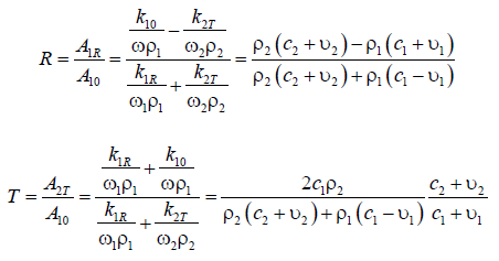 Hence, the reflection coefficient R and the transmission coefficient T are determined by the relations: