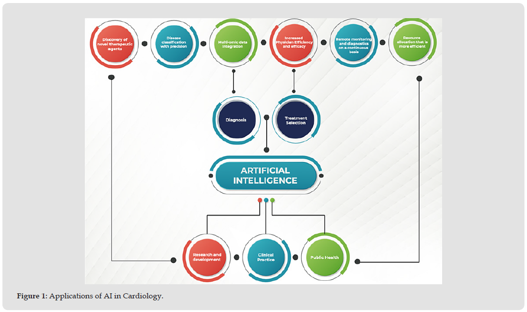The advances in computer science prompted new levels of connectivity, and with the use of worldwide networks, exponentialize AI’s advancement [5]. During this time, researchers and developers recognized that AI systems in healthcare must be designed to accommodate and improve data and aid, rather than replace, the expertise of clinicians [3-5]. Currently, these new technologies have allowed the growth of AI applications in healthcare [2-6]. Faster collection and processing capacity of clinical data, improvements in computer vision processing time, have allowed machines to replicate human perceptual processes exponentially. High-specificity robot-assisted surgery, better insight and data records on rare diseases, electronic medical record systems, increasing knowledge in the genomic sequencing, and software that recognizes pathological abnormalities during medical procedures have already successfully applied this type of robotic intelligence [2-7]. The applications of AI in medicine are based on several principles, such as improving accurate diagnosis and treatment, utilizing of robotic tools, relieving the burden on doctors, and drug development [5-7]. Nowadays, there is virtually no branch of medicine that does not actively research AI to enhance diagnostic and therapeutic methods. In Radiology and Infectious diseases, more accurate and detailed methods through computerized tomography and magnetic resonance imaging have been developed, significantly improving the diagnostic accuracy. In Oncology, there is ongoing research into the early detection of cancer and the identification of the most effective treatments. Likewise, in Cardiology, several groundbreaking applications have been developed [2-13].