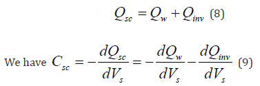 The capacity of the Csc interface is maximum in inversion mode, because the ZCE is maximum (W=Wmax). The total capacity of the structure is then written by Eq. (11):