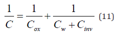 With Cox the capacitance of the oxide, Cw capacitance due to the ZCE and Cinv capacitance due to the minority carriers accumulated at the insulator-semiconductor interface as shown in Figure 5.