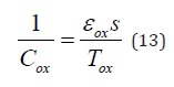 Indeed, in accumulation, the MIS capacitance is equivalent to a plane capacitor with a thickness equal to the thickness of the Tox insulation and whose capacitance of the insulating layer is given by Eq. (13):