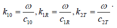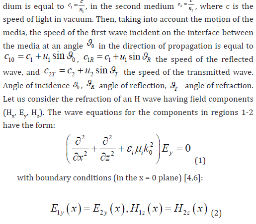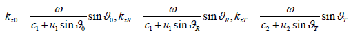 where in the general case, the wave numbers of the forward and backward waves in the first medium and the forward wave in the second semi-infinite medium differ due to the difference in the velocities of these waves, which is created by the movement of the media: where in the general case, the wave numbers of the forward and backward waves in the first medium and the forward wave in the second semi-infinite medium differ due to the difference in the velocities of these waves, which is created by the movement of the media: