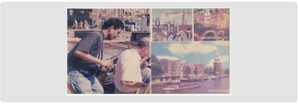 Fulfilling Mr. Anema’s invitation to the Netherlands after completing MSc. Crop Science Dept. University of Guelph, Canada. Get around Amsterdam by river by water vehicle. 1995.