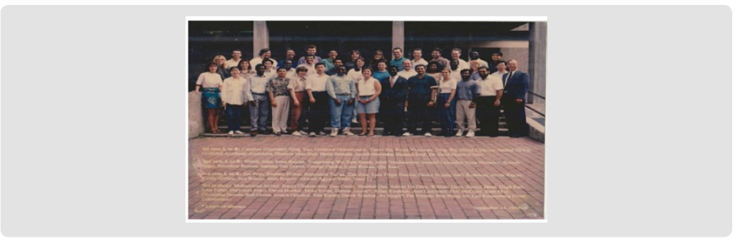 Crop Science Graduate Students, pose with Prof. Dave Hume (Department’s chair – left end front row) 1995. I stood in the middle position of the second row.