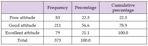 56.6% of the respondents had a good attitude towards COVID-19. Less than 50% of the respondents had