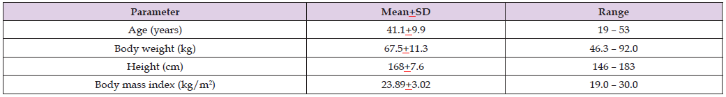 Table 4: Vital data of the 17 healthy women and 18 healthy men included in the study. Values are the mean+SD and range, by (Leuratti et al. [38]).