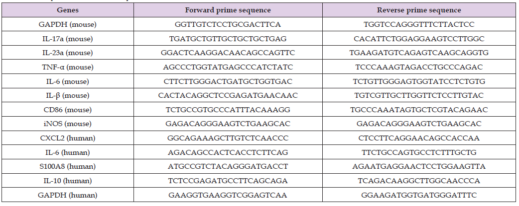 (qPCR) or flow cytometry. Psoriatic inflammation model was established by topically applying imiquimod