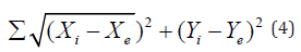 The Euclidean median is an additional useful metric for determining the center. It is more practical to determine the center that minimizes the total unsquared distances rather than the total squared distances. The location that minimizes the total of the Euclidean distances from every other point in a geographical distribution to that central location is called the Euclidean median (X_e,Y_e), or the median center. In this position, the sum is mathematically reduced: also known as the median center, is the place that minimizes the sum of Euclidean distances from all other points in a spatial distribution to that central location. This position reduces the sum mathematically: