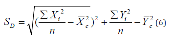 A point pattern’s absolute dispersion is measured using the standard distance (SD). The standard distance statistic includes the straight-line or Euclidean distance of each point from the mean center after the geographic coordinates of the mean center have been established. Following are some estimates for standard distance: