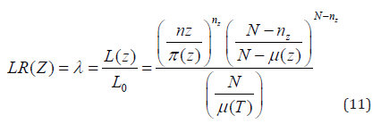 N() and μ() stand for the random number of cases and the expected number of cases, respectively, within the given window. The likelihood to observe the observed number of cases inside and outside of each window can be calculated separately. The most likely cluster (MLC) is identified by the window Z* that maximizes the likelihood ratio. With the help of SaTScan Software, Kulldorff’s spatial scan statistic has been used in a wide range of epidemiological investigations as well as disease surveillance for the detection of disease clusters (Kulldorff et al., 2007). Spatial scan statistics can be applied to both aggregated data and data with specific point locations. The latter will be considered in the proposed study. There are m cells in a research area, C sickness cases overall, and N people in total. The null hypothesis states that we assume each cell’s population size-dependent expected values are Poisson distributed and that there are no clusters in the map. We define L(Z) as the likelihood under the null hypothesis that there is no cluster in the zone and L_0 as the probability under the alternative hypothesis that there is a cluster in zone Z, per Duczmal and colleagues (2005).