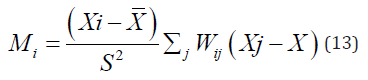 Moran (1950) proposed a measure to estimate the global spatial autocorrelation (β);