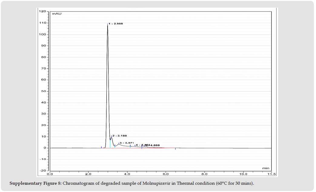 The force degradation studies were conducted to evaluate the compound’s stability and potential degradation pathways under different stress conditions. The UPLC system was used to analyze the degraded samples obtained from each degradation study. The chromatographic parameters, such as retention time and the extent of degradation, were compared to those of the non-degraded standard solution. Any alterations observed in the chromatographic profile or a reduction in the peak area of the compound indicated degradation. The force degradation studies results are tabulated in the Supplementary Tables 4 & 5. The chromatograms of force degradation studies are represented in supplementary information (Supplementary Figures 2-11) (Supplementary Table 6).