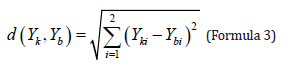 According to the cumulative contribution rate of principal components in 2.3, and the mean value and standard deviation of the first principal component coefficient and the second principal component are taken as the digital features, and the Euclidean distance (formula 3) between the matching marker and the digital feature library is obtained as the evaluation index of skull similarity.