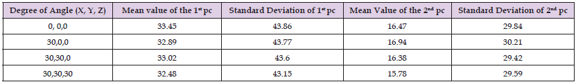 Therefore, the anatomical features consistent with the personalized face must be found to be applied to the cranial-plane matching data. The zygoma can be used as a three-dimensional evaluation feature of facial soft tissue defects as described by Elena et al [11], And the zygomatic bone is also the widest part of the face, as the maximum variance of the feature point on the coronal axis. The Angle between the frontal and nasal angles, the upper end of the nasal bone, and the connection at the end of the nasal bone, varies greatly in different races or among different individuals [12], The frontal nose angle can be regarded as the maximum variance of the feature point in the sagittal axis and can be used as a cranial-cranial match. The convex shape of chin lung is divided into round, square and pointed, and there are great differences in different races or different periods [13], Thus it can also act as markers of cranial-cranial matching. Among the differences in cranial structure, the genetic influence rate of the dental arch of permanent teeth was as high as 72.92% [14], Therefore, the nasal root-chin bulge distance can be regarded as the maximum variance of the feature point on the vertical axis and also as a sign of cranial-cranial matching. The matrix principal component difference is mainly based on its eigenvalues and eigenvector, which represents the main direction of point cloud distribution in 3 D space and is the calculation of principal component coefficients. Based on the anatomical features described above, the basic structures of interskull matching include zygomatic, nasal root, nasal bridge, dental arch, and mental bulge of the mandible. As a technology of dimension reduction analysis, principal component analysis can reduce the complex face point cloud [15], Thus the principal component distance is calculated and used as a feature similarity [16].