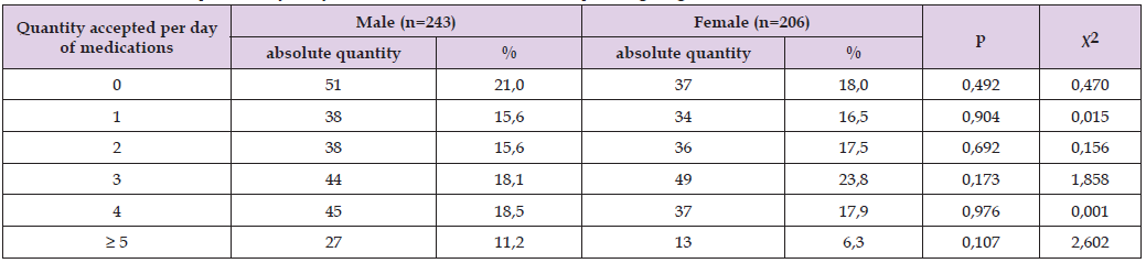 Note: 0 – did not take any medications; 1,2,3,4 – taking 1,2,3 or 4 drugs per day; ≥ 5 – taking 5 or more drugs per day.