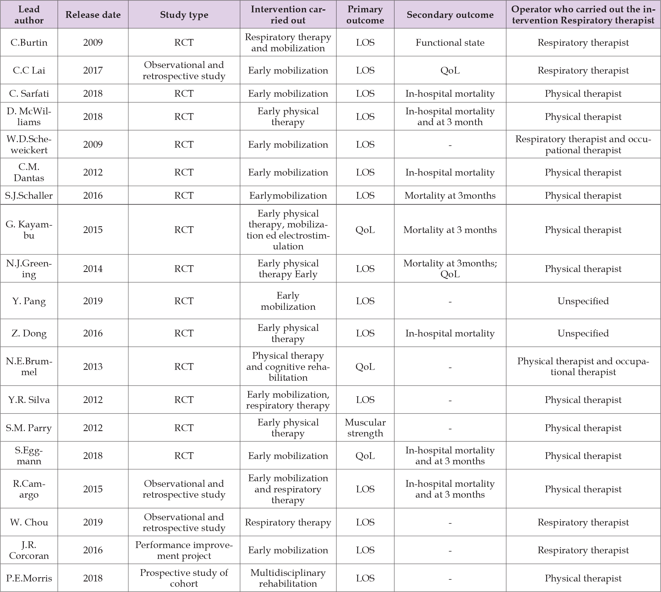 The aim of this review was to assess if early mobilisation and