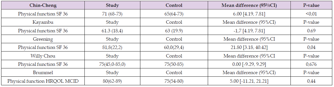 Willy Chou) and one uses the EuroQol-5D (Brummel) (Table 4)