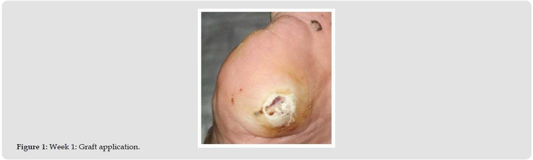 The patient was selected for Acesso graft application after a previous round of non-Acesso grafts applied four months prior did not result in wound closure.