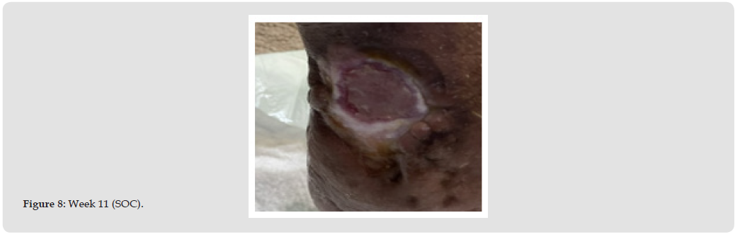 Patient 2: SOC therapy in the final stages was critical for complete wound resolution, indicating that SOC therapy may enhance or finalize the healing process after graft therapy.