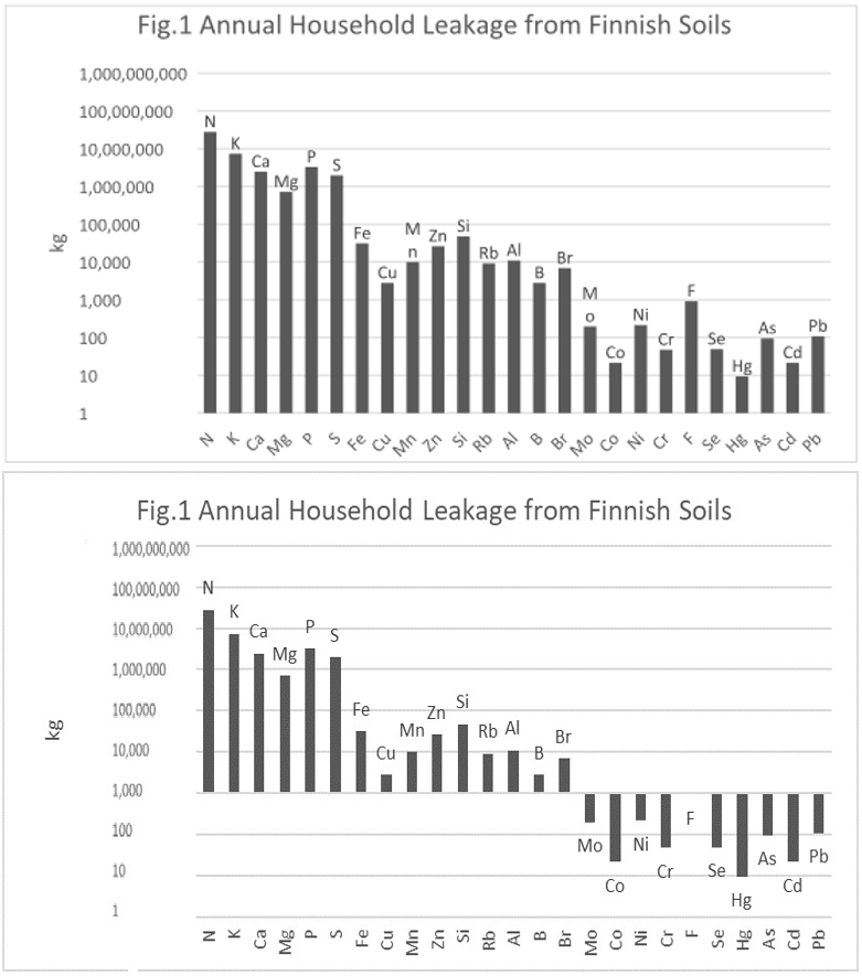 Figure 1: This figure shows approximate Finnish household leakage of soil minerals in the 1970’s (without replacements).