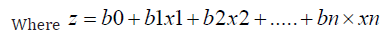 Here, b0 is the constant, b1 to bn are the coefficients of input variables, and x1 to xn are the input variables.
