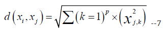 Given a training dataset of N samples with their corresponding feature vectors x_i and class labels y_i, the KNN algorithm can be used to classify a new sample x_test by finding the K closest training samples to x_test in feature space. The class label for x_test is then assigned based on the majority class among the K nearest neighbors. The distance between two feature vectors x_i and x_j can be computed using any of the standard distance metrics, such as the Euclidean distance or the Manhattan distance. For example, the Euclidean distance between two feature vectors x_i and x_j can be computed as follows: