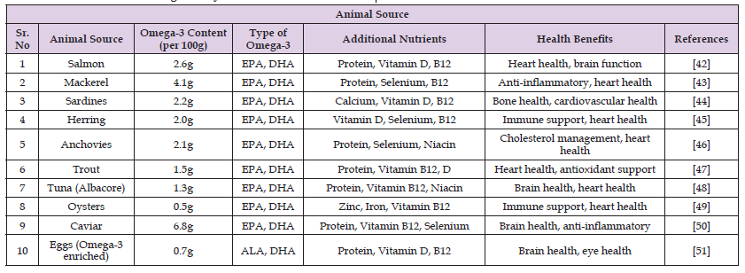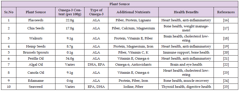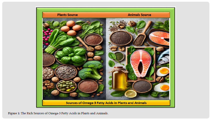 Hemp Seeds: Omega-3s provide an excellent source of ALA. Adding hemp seeds to a salad could conceivably enhance the flavor and nutritional value of the dish. Add hemp seeds to the yogurt to enhance texture, flavor and nutritional value. Add hemp seeds to smoothies to soften the texture and boost their omega-3 fatty acids. One might consider adding hemp seeds as a way to bring a new texture to breakfast cereal or oatmeal. Hemp seeds represent a valuable source of plant-based omega-3 fatty acids, alpha-linolenic acid [10]. Hemp seeds are a complete source of protein, including all essential amino acids. These foods are rich in fiber, which improves digestive health. Hemp plant seeds contain a balance of omega-3 and omega-6 fatty acids, which have positive effects on cardiovascular health Hemp seeds have been found to be a valuable source of essential minerals such as magnesium, phosphorus and zinc. Cannabis seeds exhibit high nutritional value, providing a variety of essential nutrients in small portions. Although rare, individuals have the potential to become allergic to hemp seeds. Thus, vigilance and monitoring for adverse effects is recommended [11]. Figure 1 one shown the rich sources of omega-3 fatty acids in plants and animals.