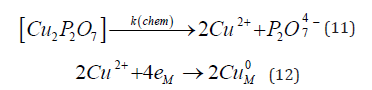 The case of mass transport limitation has been discussed before. This leads to a mass transport-limited current density, independent of potential. But a limited current density could also be observed when the limitation is kinetic. This can happen when the metal ion exists in solution as a complex, although the electroactive species participating in the charge-transfer step is the free ion. An example of such a situation is the deposition of Cu from a solution containing copper pyrophosphate. A chemical step, the rate of which is independent of potential, is followed by an electrochemical step, as shown by the next two equations [30]: