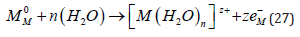 where M is any metal with a valency z. But this equation does not specify the phase in which each species is located and, more importantly, it does not take into account the role of the solvent. Both can be accounted for by rewriting this equation as