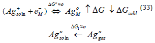 The time taken for this step is estimated, assuming diffusion from the OHP to the surface of the metal, a distance of typically 0.6nm [68]. It is intuitively obvious that a neutral silver atom in solution should be less stable than a hydrated ion, and it turns out to be estimated this difference based on the following Haber cycle (where the water ligands are not shown, for simplicity)