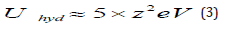 where the number of water molecules in the hydration shell is not specified because it may be different for different metals. It is important to realize that the hydration energy of ions in solution,Uhyd ,is very high, and can be expressed approximately by [18]: