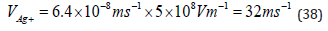 The velocity of a hydrated silver ion in the bulk of the solution is a product of its absolute mobility, which μAg+ = 6.4×10-8ms-1 (for field of 1Vm−1 ) by the electrostatic field a migration velocity of