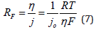 It is interesting to consider the value of the Faradaic resistance at different overpotentials. Close to the reversible potential, the Faradaic resistance is given by