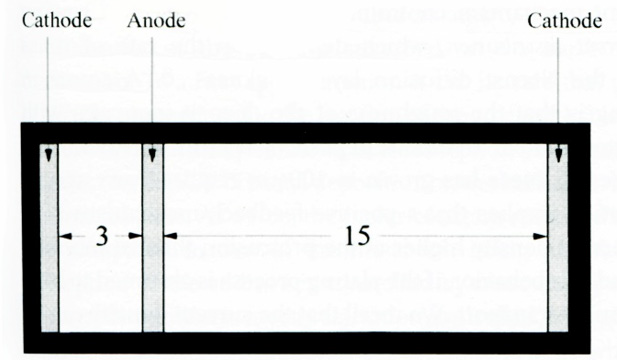 In this cell, two cathodes connected electronically are positioned at unequal distances from two sides of an anode. The throwing power (TP) is defined as [31].