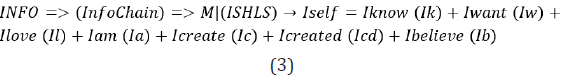 where C, F are composing components and Terminal represents the process goal. In particular, if the Terminal is the nucleus of a cell, this can activate/deactivate genes by a Decision Making (irreversible forward) process. If the Terminal is the operator Mind, then the activity of ISHLS in human is detected/projected as virtual/conceptual information in the cognitive centers. As the result of such a process, the self (Iself) is thus perceived as a result of the activity of ISHLS, schematically written as: