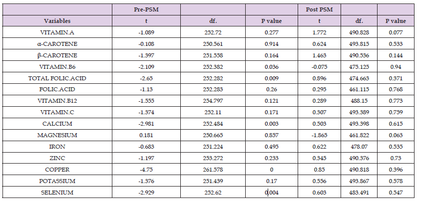 Before and After PSM, Logistic Regression Analysis of the Relationship between Dietary Micronutrients and Melanoma