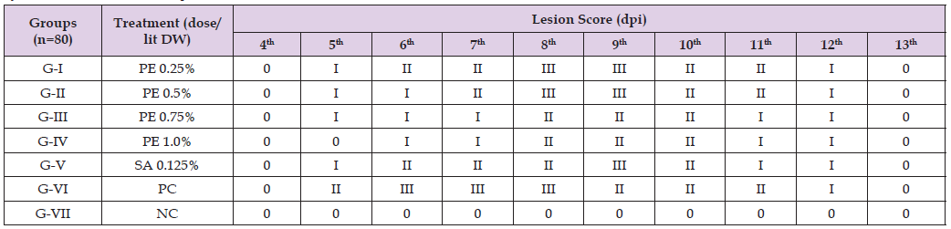 Effects of Aqueous Leaf Extract of P. Guajava on Lesion Score