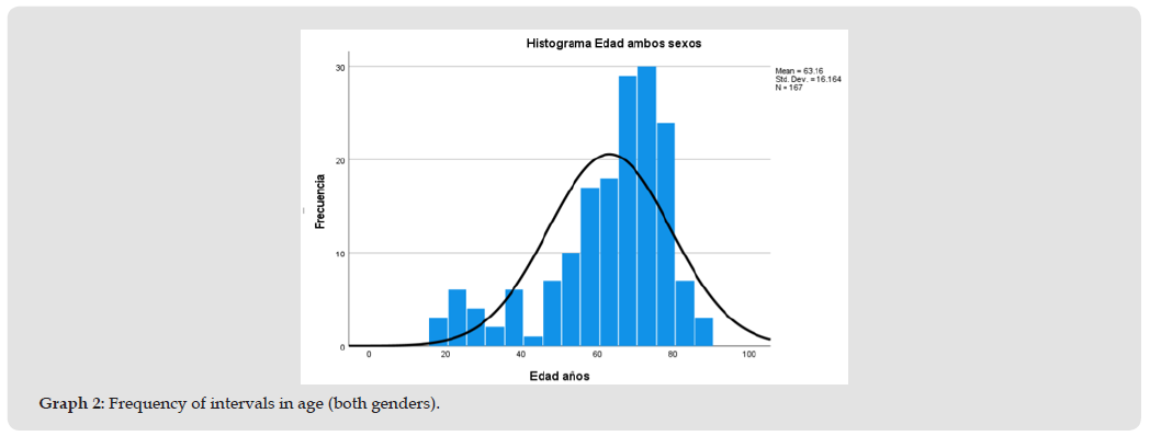 Data from 167 adult individuals (121 women [72.5%] and 46 men [27.5%]) were collected and analyzed. The mean age was 63.16 years (minimum age 18 years, maximum age 90 years). A large percentage of patients (both genders) had a PI < 5.0% (n both genders = 69/167 [41.31%]; women 49/121 [40.49%]; men 20/46 [43.47%]) versus PI > 5.1% (n both sexes = 98/167 [58.69%]; women 72/121 [59.50%]; men 26/46 [43.47%]). A PI > 5.1% was observed in women (72/167 [43.11%]) versus men (26/167 [15.52%]). Shapiro-Wilk tests for normal versus low PI values were performed for both men and women (p < 0.001) (Tables 2 & 3) (Graphs 1-7).