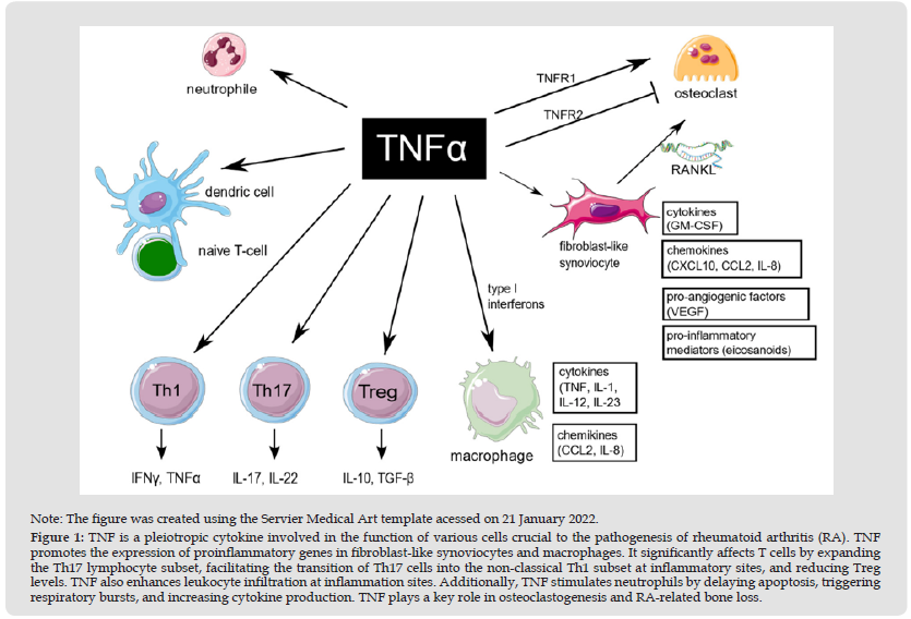 The binding of TNFα trimers (51 kDa) to the receptor activates the NF-κB1 pathway, leading to the production of pro-inflammatory cytokines like IL-1β, IL-6, IL-8, and adhesion molecules. In this way, TNFα directly participates in the defense against infectious agents, while also playing role in the initiation and zeiyasyashehye of chronic inflammation. (Figure 1) TNFα Influences Inflammatory Responses Both Directly and Indirectly. TNFα contributes to inflammation not only by directly inducing the expression of pro-inflammatory genes but also by indirectly promoting cell death. This cell death then further amplifies pro-inflammatory activation in TNFα-driven immune- -mediated inflammatory diseases (IMID). TNFα plays a key role in joint damage by facilitating leukocyte migration to the synovial membrane, promoting bone resorption, and contributing to cartilage collagen degradation through metalloproteinases. Studies of synovial fluid have shown significantly higher concentrations of TNFα in patients with PsA and RA compared to healthy individuals. TNFα is also a potent stimulator of osteoclasts and inhibits the differentiation of osteoblasts, while TNFR2-dependent signaling counteracts this by inhibiting osteoclastogenesis. TNFα is essential for the proper development of T cells. In patients treated with anti-TNFα therapy, regardless of the treatment’s success, the Th17/Treg ratio tends to return to levels observed in healthy individuals. The variability in IMID suggests that TNFα may play different roles in their development. Blocking TNFα or its receptors is the cornerstone of treatment for these diseases, typically through anti-TNFα monoclonal antibodies (mAbs). However, whether different TNFα inhibitors offer varying clinical benefits remains a matter of debate, as large-scale randomized clinical trials comparing different TNFα inhibitors and subsequent meta-analyses are lacking.