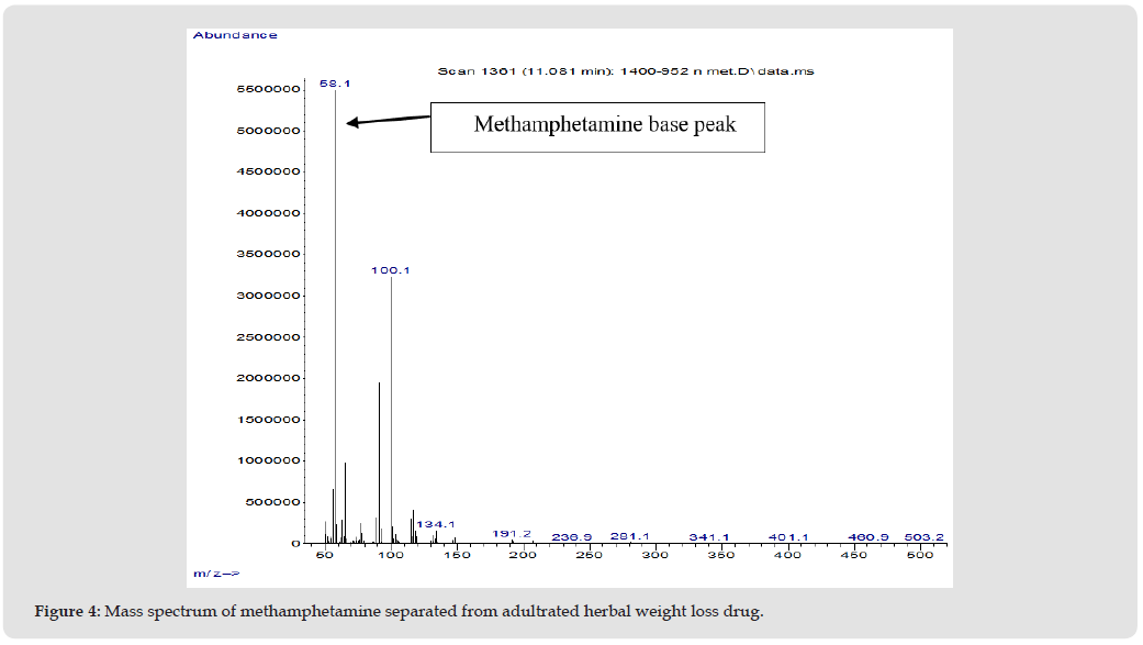 Undeclared methamphetamine has been detected in herbal weight loss supplements [28]. cases of overdose and toxicity from herbal supplements containing methamphetamine-like compounds have been reported [29-31]. A patient intoxicated by a herbal stimulant containing para-methylthioamphetamine [31]. Moreover, reports of individuals developing serious conditions like Morgellon’s disease from methamphetamine use [32]. a 41-year-old male experiencing various health issues due to methamphetamine abuse [33]. No lethal case of methamphetamine reported in herbal supplement [33]. In this critical examination, we delve into the complexities surrounding the presence of undeclared methamphetamine in weight loss herbal supplements. We explore the reasons behind this adulteration, the challenges faced by regulatory agencies, and the analytical methods employed to detect such substances. Additionally, we discuss the implications for public health and the urgent need for greater transparency and quality control within the dietary supplement industry. The case study of “Alpha Slim,” a popular weight loss herbal supplement, serves as a focal point for our investigation. By understanding the mechanisms behind methamphetamine adulteration and its impact on consumers, we aim to contribute to informed decision-making and promote safer weight loss practices.