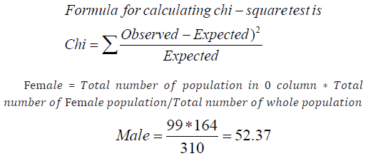 This is another chart which gives the representation of disease patients in male and female the blue one is the male and the green is the female the test which is called chi test is performed to check the null hypothesis HO is proposed Null hypothesis claims that disease does not interact with the gender of the population if the hypothesis is refuted that disease has some association with the gender of the population (Graph 2). The overall amount of men in Table is 208, and the female population is 99. The columns range from no heart attack to seriously dangerous heart disease is 0,1,2,3,4 and their cumulative values are approximately 164, 56, 37.5, 37.5 and 15. It measures the estimated number of patients who are sick. One explanation as to how the predicted number for the 0 column is extracted is as follows:
