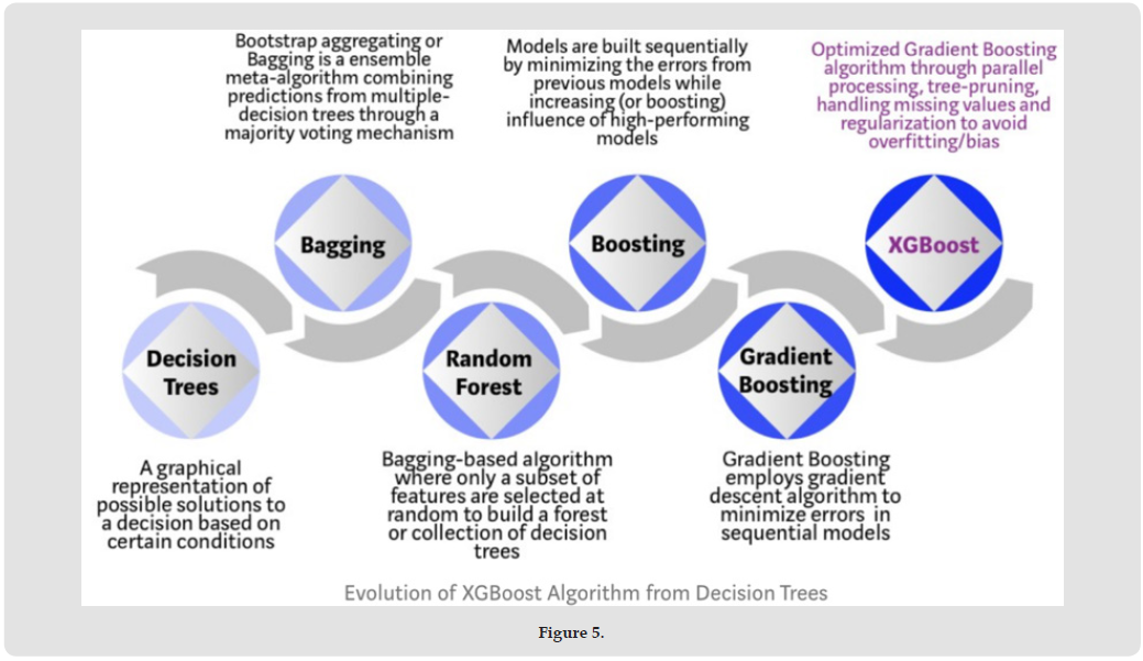 It’s a machine learning algorithm decision bases tree ensemble that uses a basis for gradient boosting. Artificial neural networks tend to outperform all other algorithms or frameworks problems in prediction involving unstructured data (images, text, etc). nevertheless, decision-based tree algorithm is contemplating the best in – class right now when it comes to small-to-medium structured / tabular data. For the evolution of tree-based algorithm over the years please see the graph below (Figure 5). Once again it is one of the advance ensembles learning algorithms witness an enhance in adaption. Of real-world application when compared to other gradients descent conventionally used in machine learning will it leverages the boosting of gradient to figure out the objectives of optimal values towards the best decision and is suitable in real world application that needs distributed computing, parallelization, cache optimization and out-ofcore computing that have high stipulation for time computation and memory storage [17].