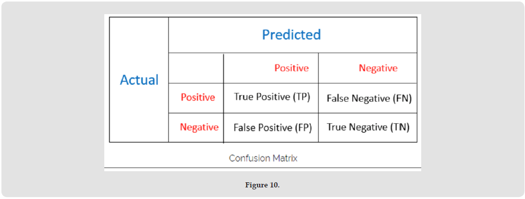 The uncertainty matrix is a tool for demonstrating how to mislead the classifier when forecasting. The confusion matrix is also seen as below in a binary classification problem (Figure 10). In Table 1, TP is the true positive value, meaning that the positive value is actually classified, FP is the false positive value, meaning the falsely classified positive value, FN is the false negative value, meaning the falsely classified negative value, and TN is the actual negative value, meaning the honestly classified negative value. Varying success metrics can be determined from the confusion matrix. Precision, recall, Accuracy and F1-score are elucidated more briefly below, using Table 1 as an example [25].