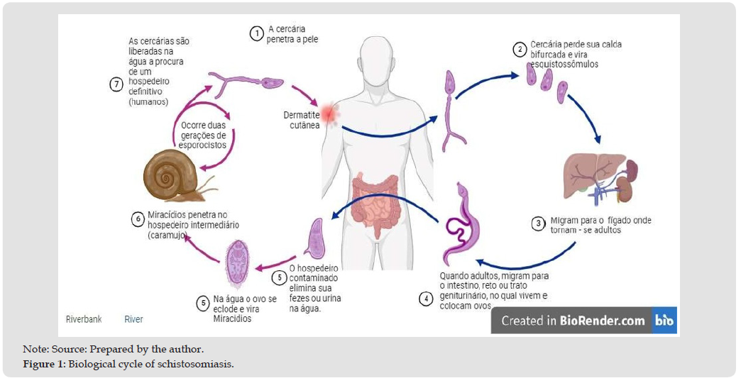 Schistosomiasis is a parasitic disease whose main host is humans, while the intermediate hosts are the snails of the species Biomphalaria spp. Caused by helminths of the genus Schistosoma, it is transmitted through fresh water, such as rivers and lakes [1].
