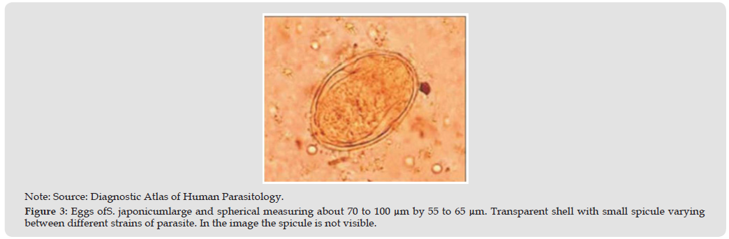 Schistosoma Japonicum: It is a species of parasite that belongs to the hepatointestinal schistosomiasis group. It is widely distributed in regions such as China, the Philippines, Indonesia, and Japan. Transmission of this disease occurs mainly in endemic areas and depends largely on the availability and abundance of suitable hosts (Figure 3) [5,6]. Although its main form of infection is in humans, the Schistosoma japonicum can also infect other mammals, such as cattle, pigs, dogs and rodents. This versatility of hosts contributes to the maintenance of the disease in areas where the parasite is present [6].
