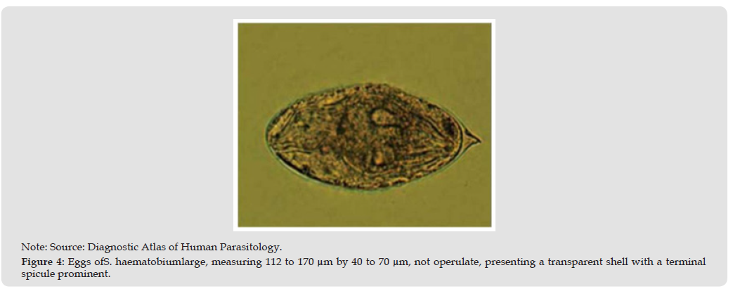 Established Active Infection: Acute schistosomiasis is rarely seen as the disease progresses to an established active infection, with mature worms and well-defined egg production. At this stage, it is characterized by the excretion of live eggs in the feces and urine. The live adult worms present in the blood vessels do not cause local infection and are not directly symptomatic. The main symptoms and lesions are related to the infected organs due to the inflammatory response against the parasite eggs. These eggs secrete antigenic glycoproteins that facilitate their passage from the blood vessels to the intestine and urinary bladder, thus promoting the transmission of the disease and triggering an immune response [16]. Acute schistosomiasis is rarely observed, as the disease progresses to an established active infection, with mature worms and well-defined egg production. At this stage, it is characterized by the excretion of live eggs in the feces and urine. The adult worms present in the blood vessels do not cause local infection nor are they directly symptomatic. The main symptoms and lesions are related to the infected organs due to the inflammatory response against the parasite eggs. These eggs secrete antigenic glycoproteins that facilitate their passage from the blood vessels to the intestine and urinary bladder, promoting the transmission of the disease and triggering an immune response [17].