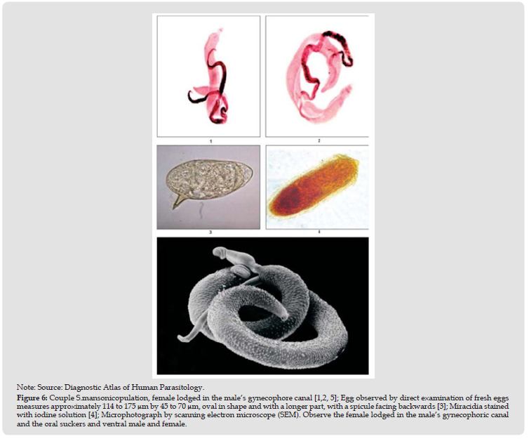 Schistosoma Mansoni: In Brazil, the Schistosoma mansoni is recognized as a serious public health problem. The disease it causes is hepatointestinal and, due to the complexity of its transmission mechanism and the diversity of factors that condition and affect the control of the disease, it is crucial to detect it early and start treatment promptly. This is essential to prevent the cumulative action of the eggs of the S. mansonicauses damage to the affected organs, especially the liver (Figure 6) [9].