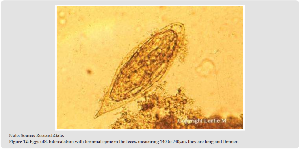 Schistosoma Intercalatum: Schistosomiasis caused by Schistosoma intercalatumis little known, being prevalent in West and Central Africa, especially in the Democratic Republic of Congo region. TheS. intercalatumcauses intestinal impairment, focusing on the perianal region, and is associated with causes of chronic diarrhea and pathological changes in the colon (Figure 5) [8].