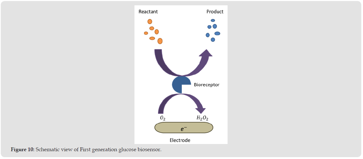 The glucose oxidase component still a typical component found vast that are currently available for use in commercial settings. This is because of the fact that it is economical, possesses an exceptional selectivity, and possesses a tremendous level of sensitivity. There have been tremendous breakthroughs achieved in the development [99]. These biosensors enable accurate monitoring of blood glucose levels. It has been possible to accomplish these breakthroughs. Clark and Lyons invented the glucose enzyme electrode by entrapping a thin layer of glucose oxidase (GOx) over an oxygen electrode through a semipermeable dialysis membrane. They created the first glucose enzyme electrode. They extracted the electrode from the glucose enzyme because of this. The structure makes it easier to catalyze glucose oxidation in oxygen, allowing oxygen use. After that, a platinum (Pt) cathode monitored oxygen consumption, which was used to measure hyperglycemia. Technological advancements have accelerated biosensor manufacture [100].