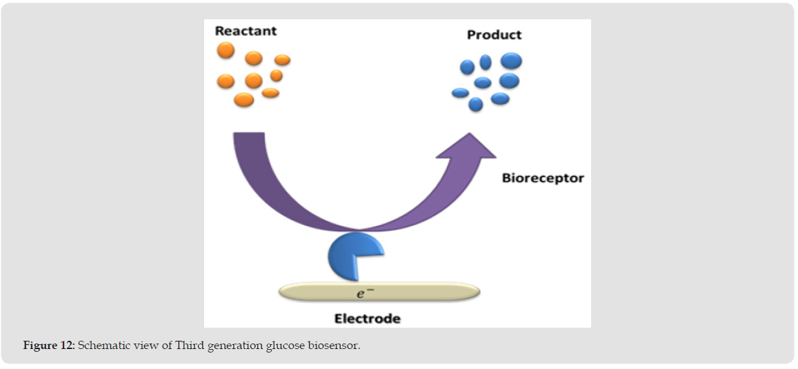 They operate in the perfect biosensing paradigm, which does away with the requirement for intermediates, the amperometric glucose biosensors of the third generation have the potential to be revolutionary. There have been varieties of various ways that have examined in attempt to achieve the goal of direct electrochemistry of enzymes. Methods such as reconstituting apo-proteins on cofactor- modified electrodes or apo-enzymes on cofactor-functionalized gold nanoparticles are examples of these types of techniques [102]. For aligning redox enzymes on electrodes, these strategies utilized. It is possible to overcome the large electron-tunneling distance through the usage of these technologies, which, in turn, leads to an improvement in the efficiency and sensitivity of glucose detection in biosensors systems furthermore, it has been suggested that some nanomaterial’s have the potential to directly synthesize glucose oxidase (GOx) through the process of electrochemistry. Through the utilization of this novel technique, the possibility for the development of innovative biosensing platforms that have improved performance and efficiency in glucose detection is expanding.